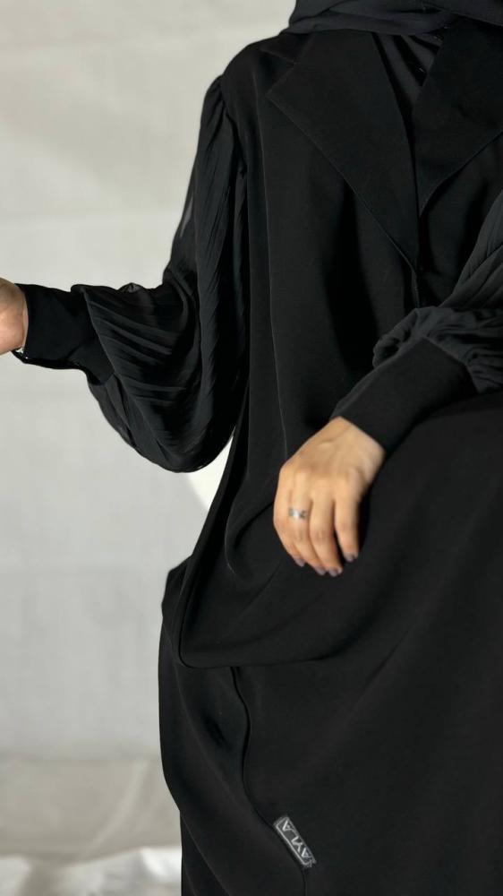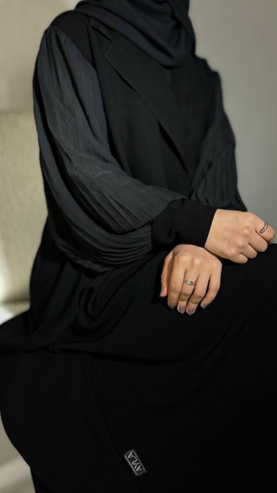 عباءة آيلا لإنك مميزه تستحقين تصميم فريد ومتميز.وصف المنتج :عباءه مميزه بقماش الكريب الكوري الملكي مع إضافة قماش شيفون كسرات في الأكمام.الإضافه : طرحه سوداء ساده.نوع القصه :ربع كلوش.